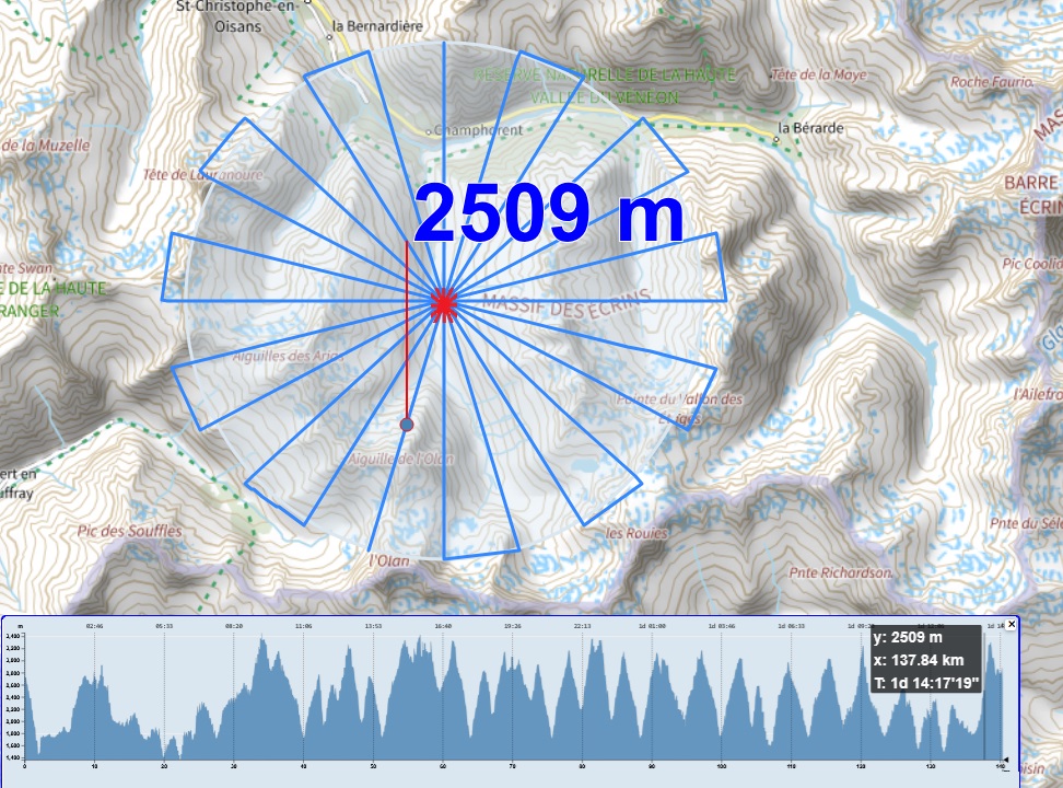 ou sur la zone d'altimétrie en étoile avec le rayon spécifié.